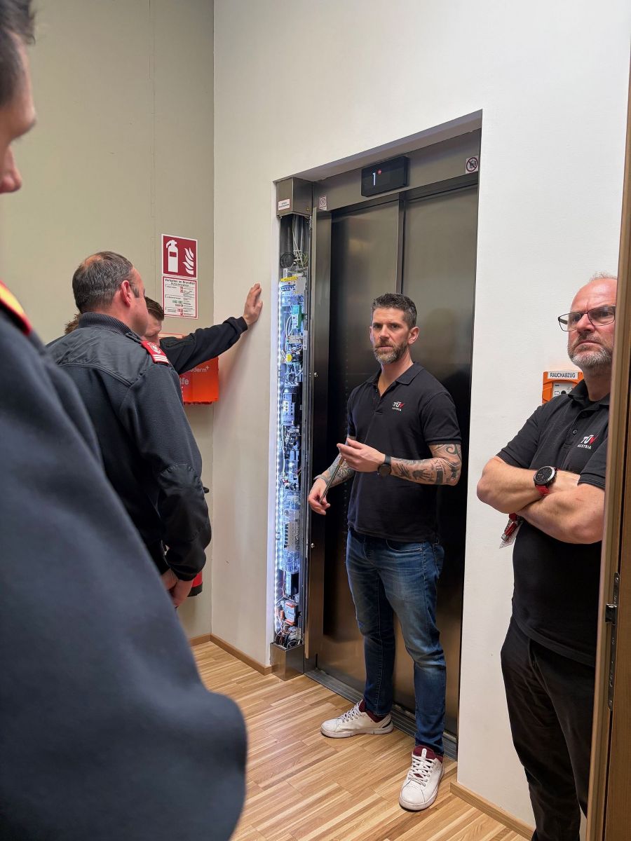 Im Rahmen der Schulung wurden die Grundlagen der Aufzugstechnik vermittelt, wobei besonderes Augenmerk auf Feuerwehraufzüge, relevante Sicherheitseinrichtungen, typische Gefahren sowie die gängigen Standardeinsatzmaßnahmen gelegt wurde. Zusätzlich wurde die direkte Notbefreiung an einer Aufzugsanlage praktisch beübt. Im Jahr 2025 verzeichneten wir insgesamt 399 Einsätze im Zusammenhang mit Aufzugsnotbefreiungen.